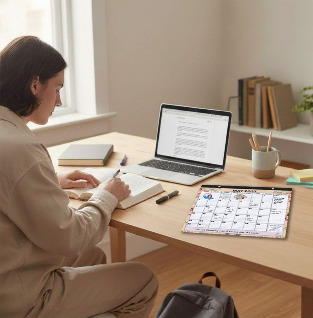 Studies show that people are more likely to follow through with goals when they have visually clear, structured plans. Tools like planners, wall calendars, and fridge calendars support this.